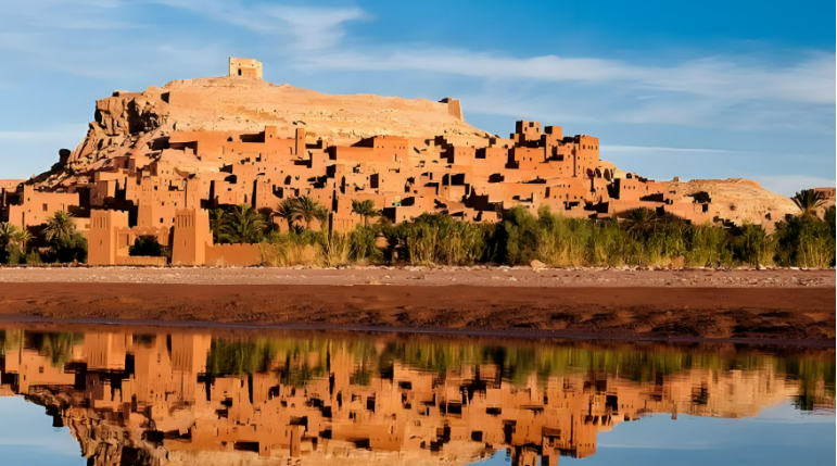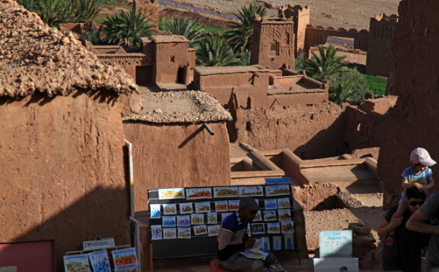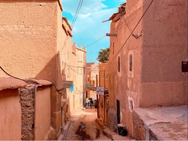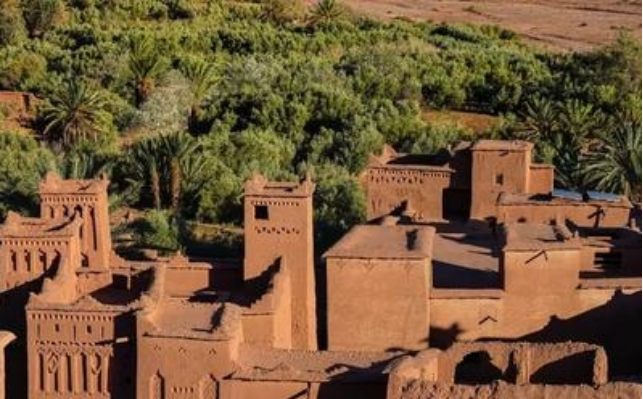 阿伊特·本·哈杜村,位于摩洛哥南部瓦尔扎扎特省。该建筑群由高墙围合的土制建筑构成,采用烘干泥土砌筑,配有箭塔等防御设施,屋顶使用防虫柳木编织。其独特的筑垒式风貌吸引了《阿拉伯的劳伦斯》等20余部影视作品在此取景。